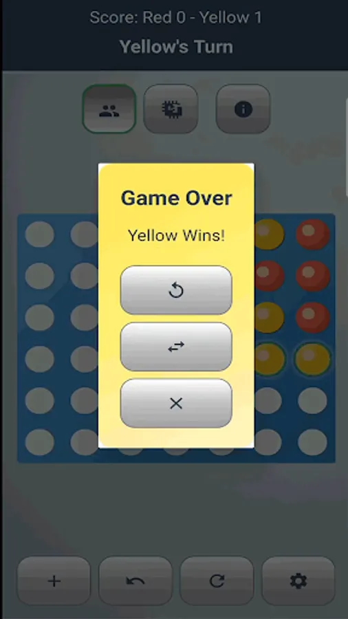 Enjoy the timeless connect-four challenge on your phone. Drop colored discs, align four in a row, and win!