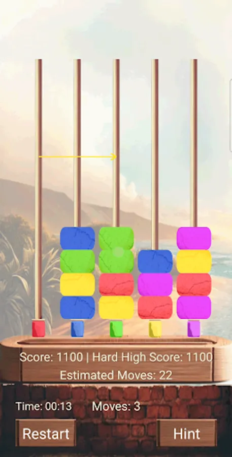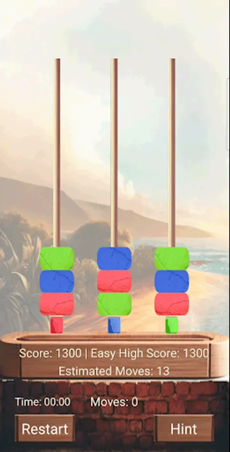 A puzzle game where players sort colored rings onto the correct rods. It features multiple difficulty levels, requiring logic and strategy to solve. The game includes touch controls, hints, and sound effects for an interactive experience. Players can track their moves and aim for the most efficient solution. Simple visuals and smooth gameplay make it easy to pick up and play.