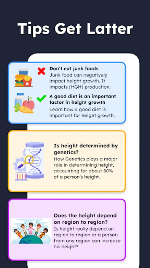 A significant portion of a kids height is influenced by their genetic inheritance from their parents, while the remainder is impacted by factors like nutrition, physical activity, and sleep habits. This height increase app for kids boys and girls mainly focuses on these factors where we offer height increase workout for kids, diet plans, sleep tracker free, and many other features.