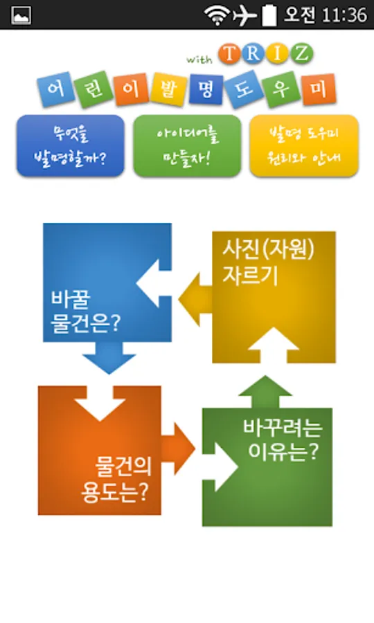 * Description: The present invention helper app was developed to make it easy for anyone to utilize the invention process of TRIZ, a well-known invention methodology in Russia. TRIZ stands for "Creative Problem Solving Technique" in Russian and is a methodology of invention that has been proven to be effective in patent development tasks of world-class companies.