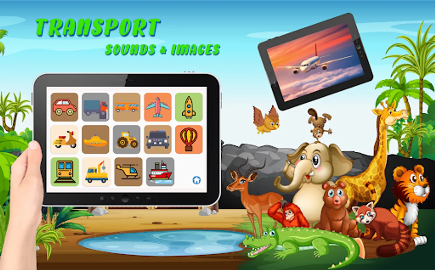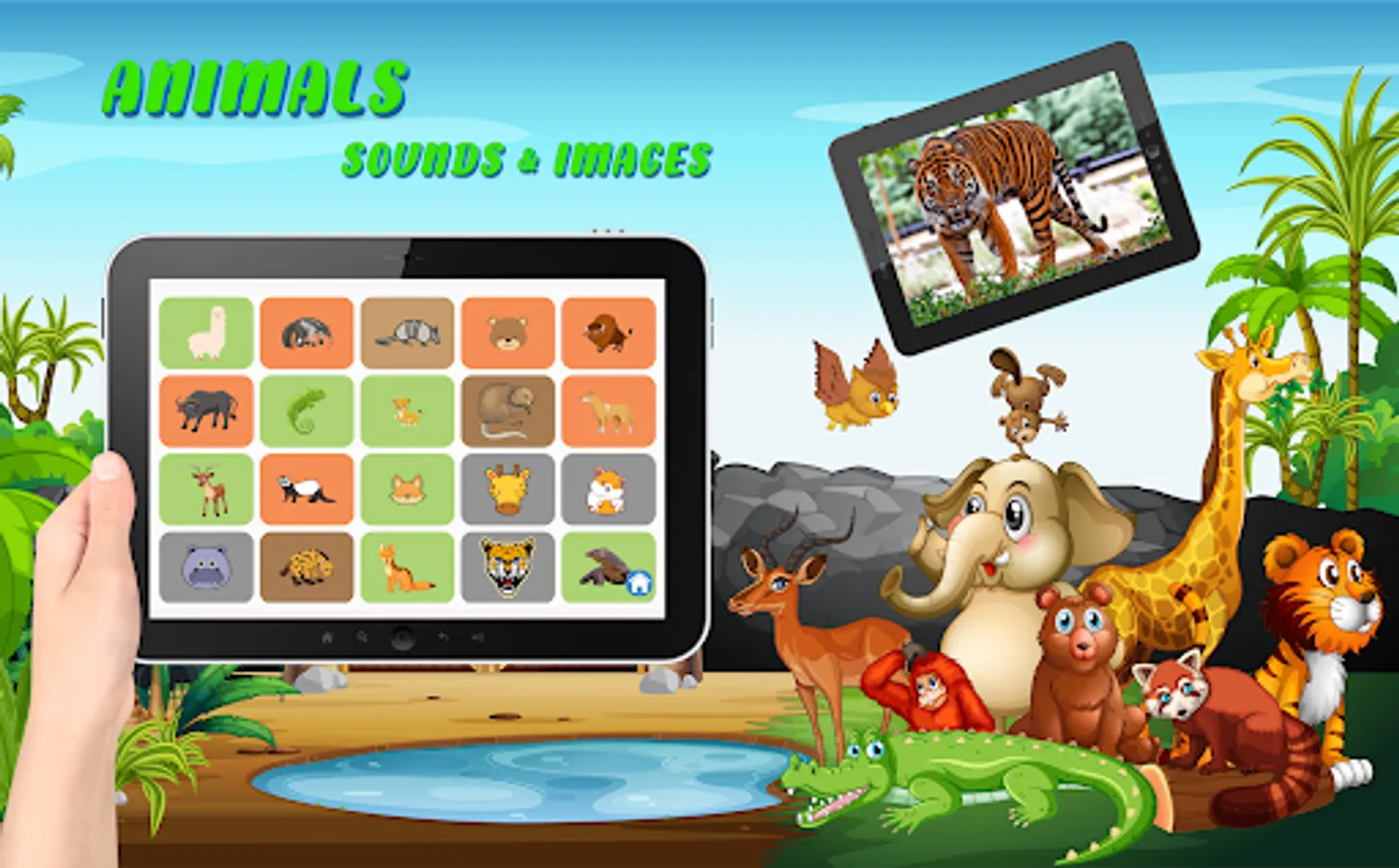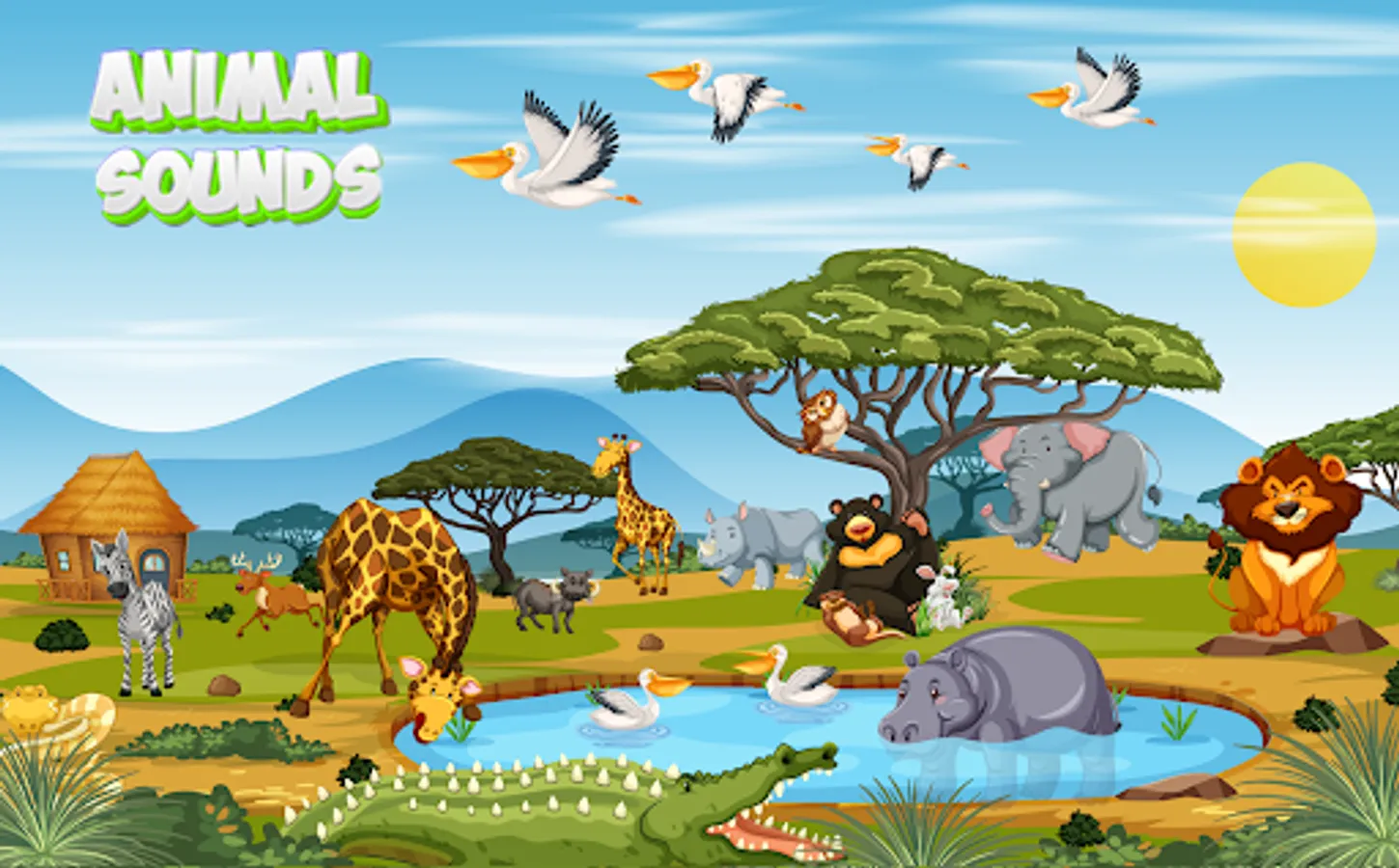 Animal sounds is learning app usually includes high-quality recordings along with colorful and engaging illustrations of each animal with sounds, such as a lion's roar, a dog's bark, a bird's chirp, dinosaur sounds, a cow's moo, and many others.