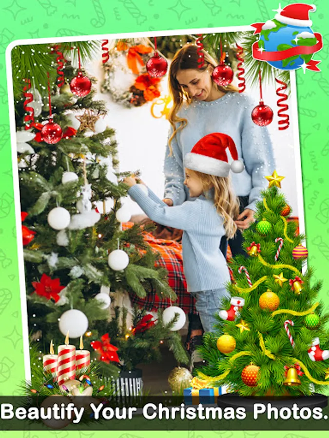 * Decorate your photos with realistic Christmas baubles, fireworks and garlands!