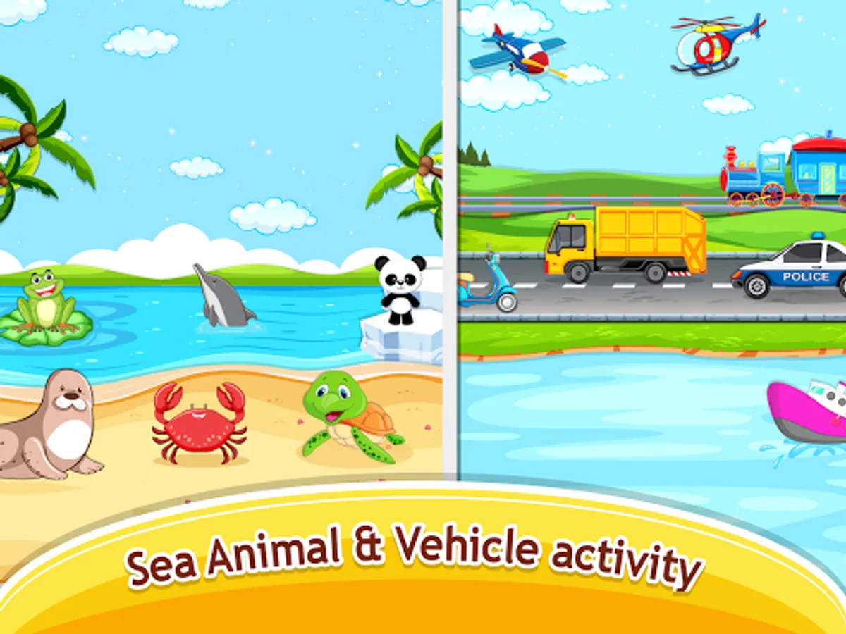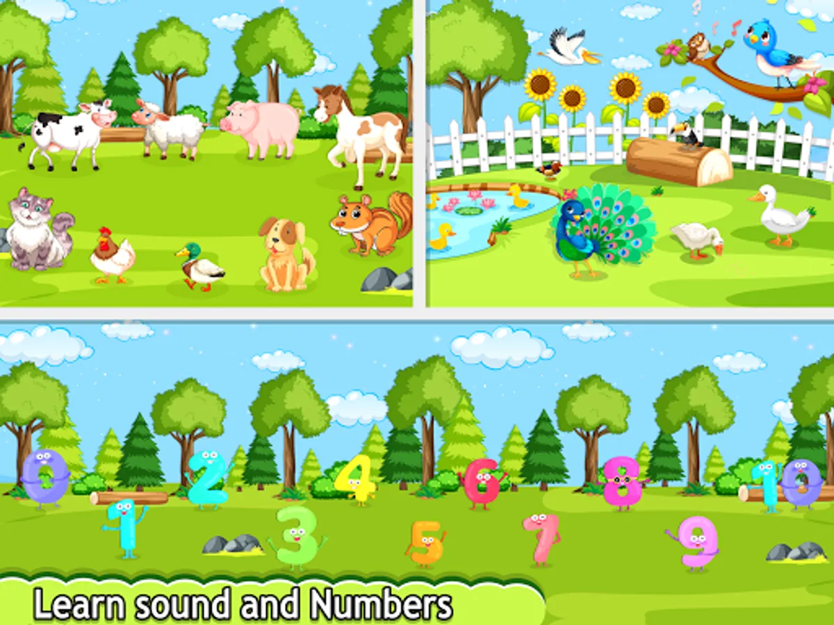 - Piano, Electric guitar, Xylophone, Drums percussion and Flute. Each instrument has real sounds and representation.