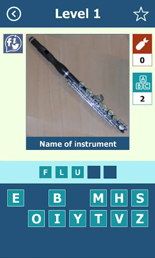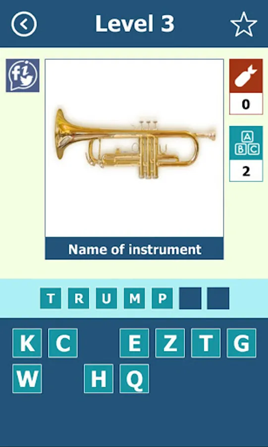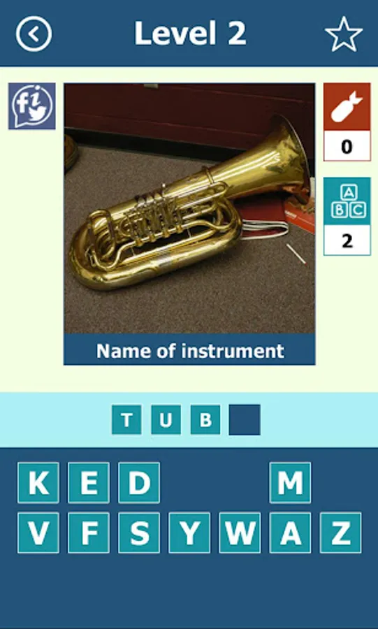 Quiz simple. You are offered a photograph and 14 letters. You need to identify an instrument and make its name from the letters. Two prompts can help to remove unnecessary letters. In addition, it is possible to ask a friend in social networks for the help.