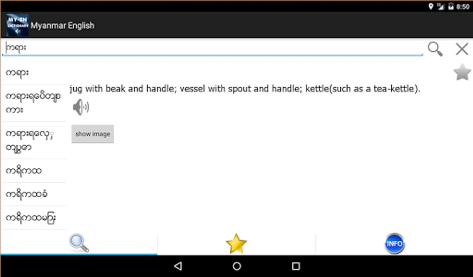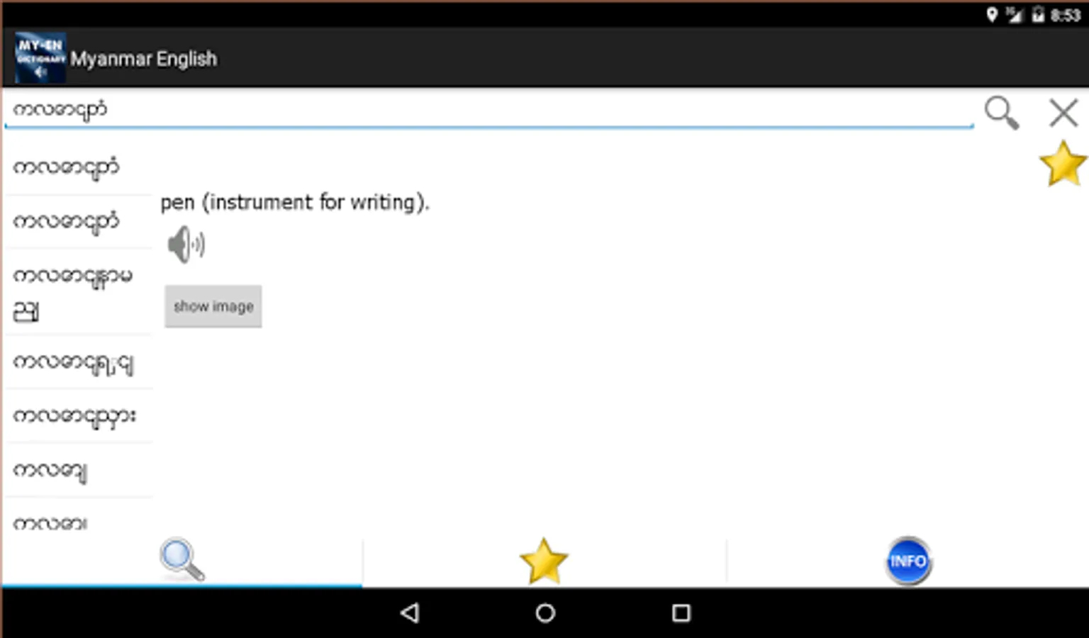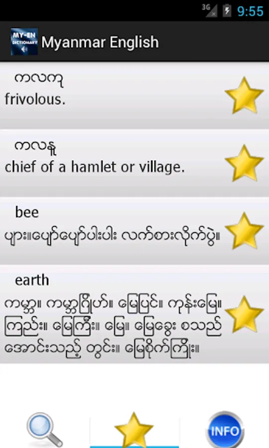 ★ In Myanmar English dictionary you can choose word to favorite by star icon.