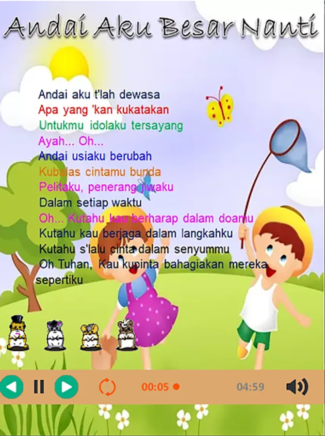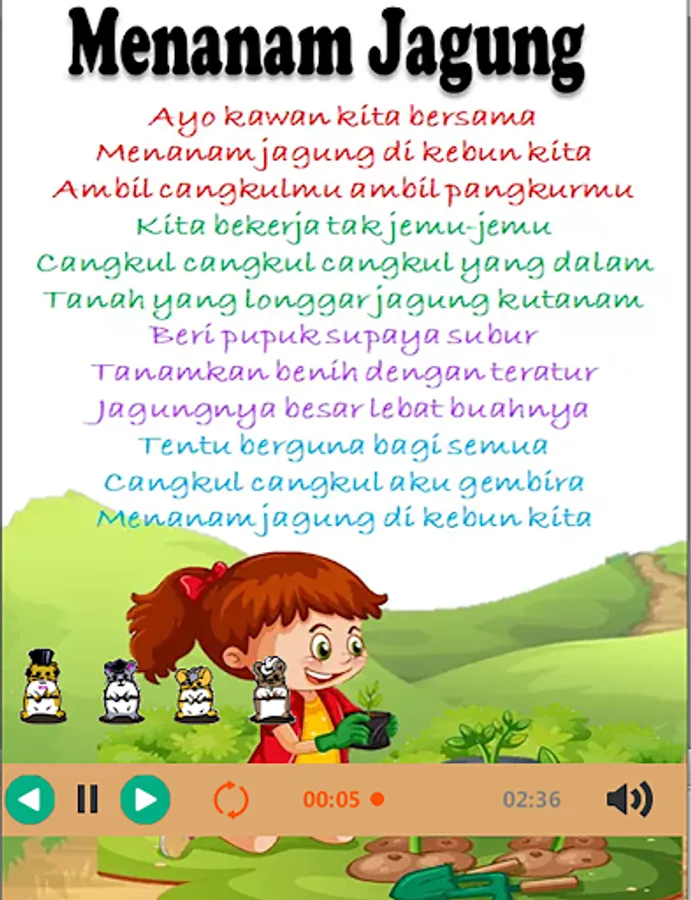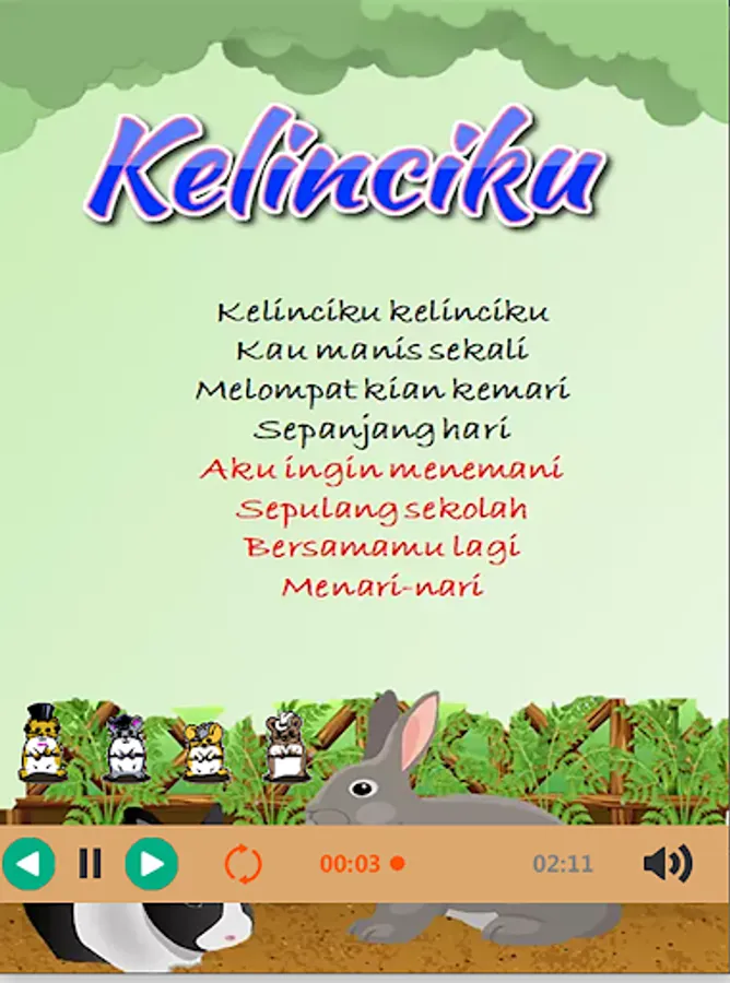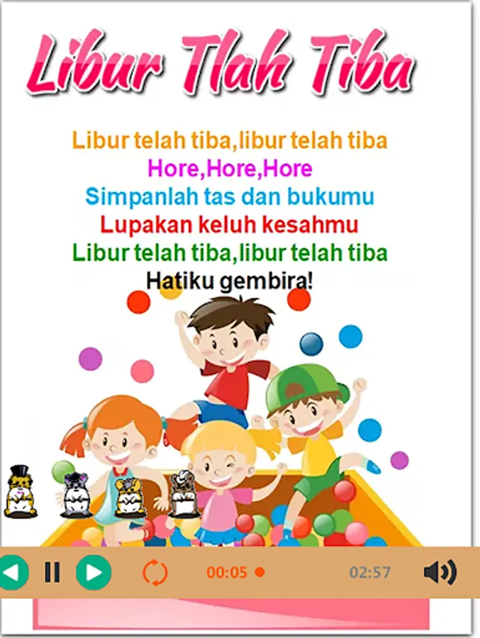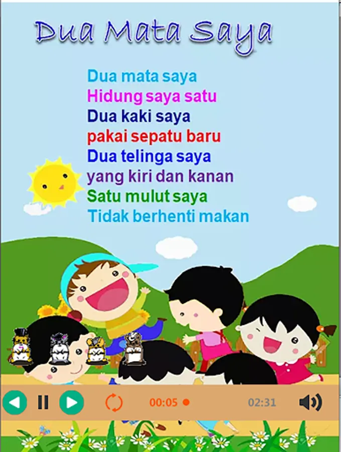 Indonesian children's song application besides its attractive appearance, this application also has many features