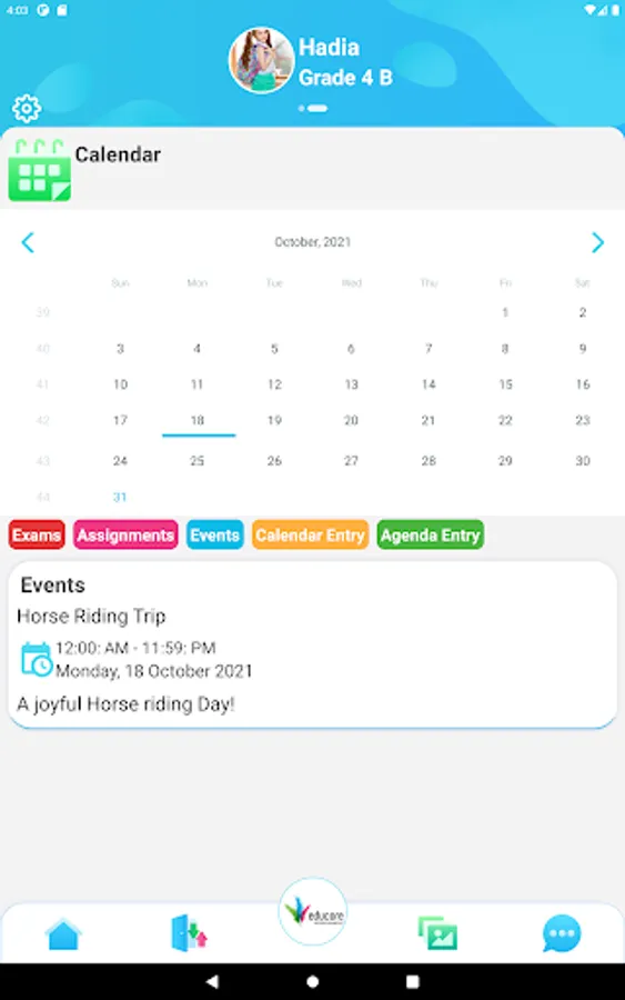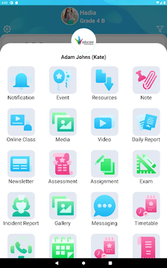 Once events are recorded from children classed, parents will instantly receive it on their app.