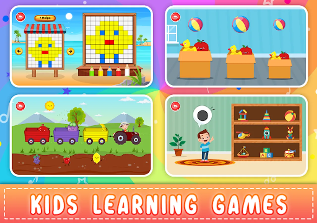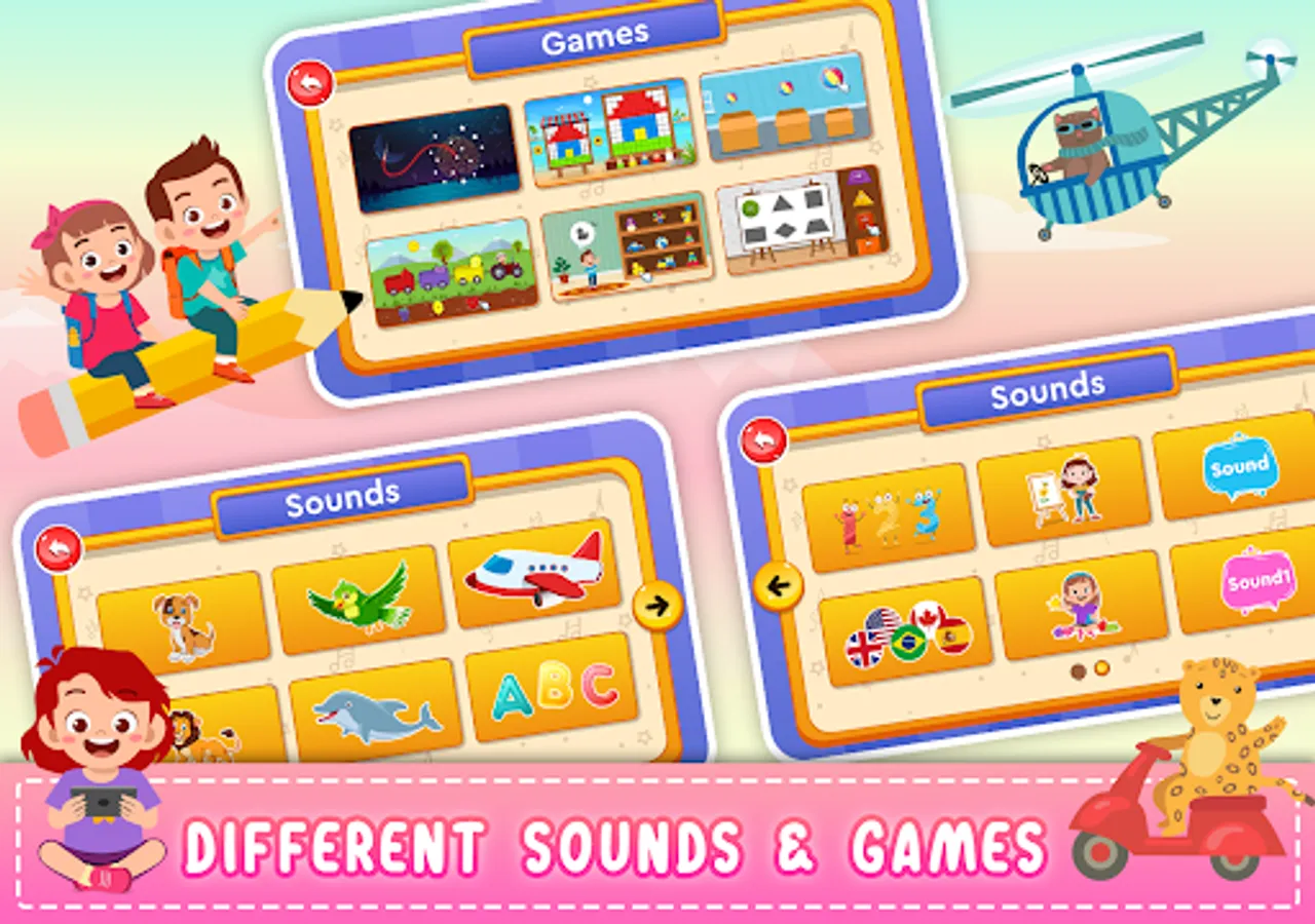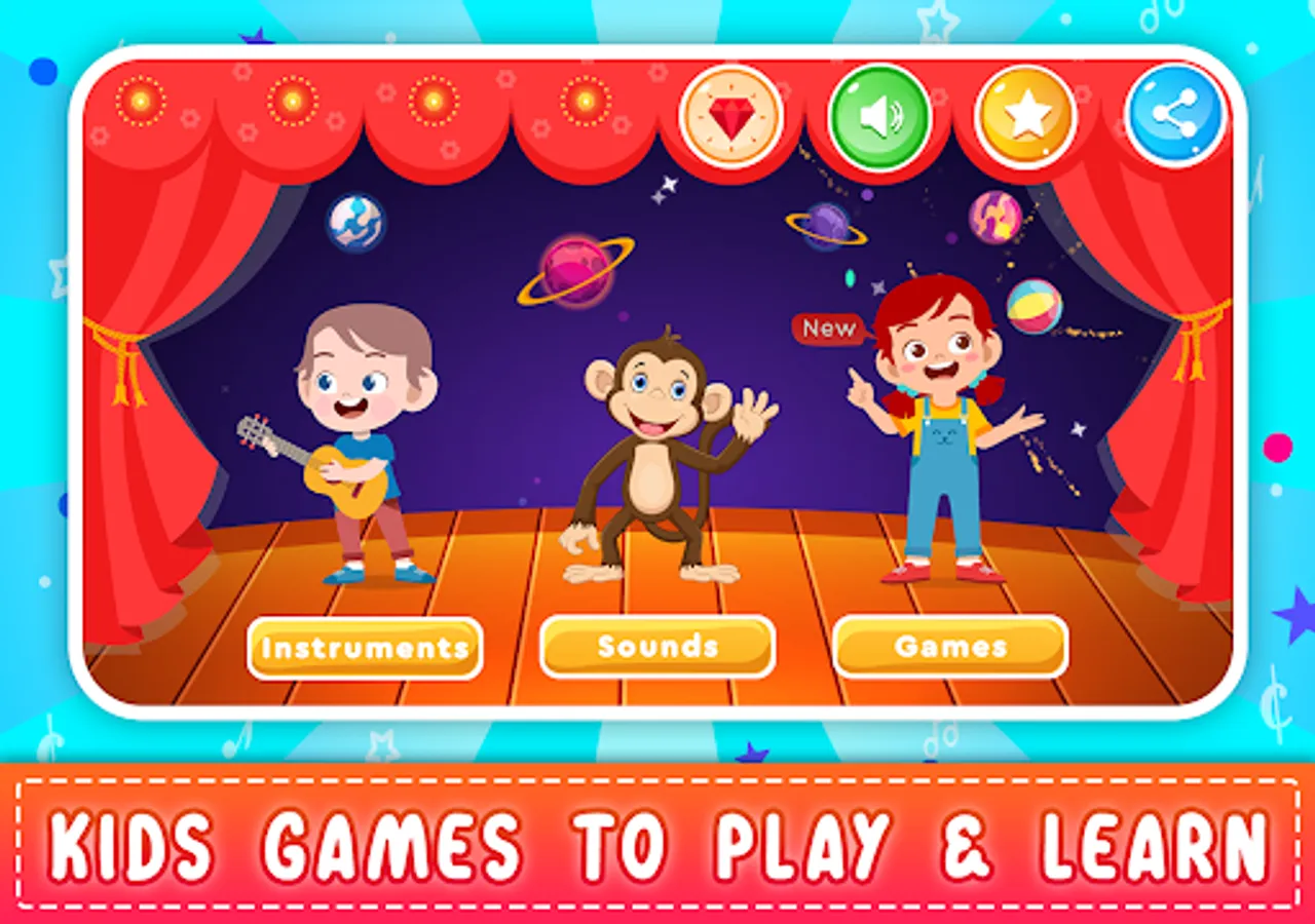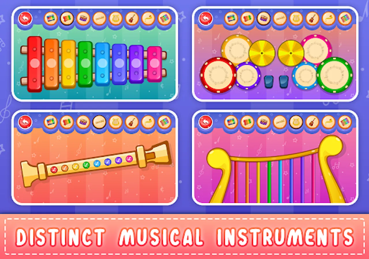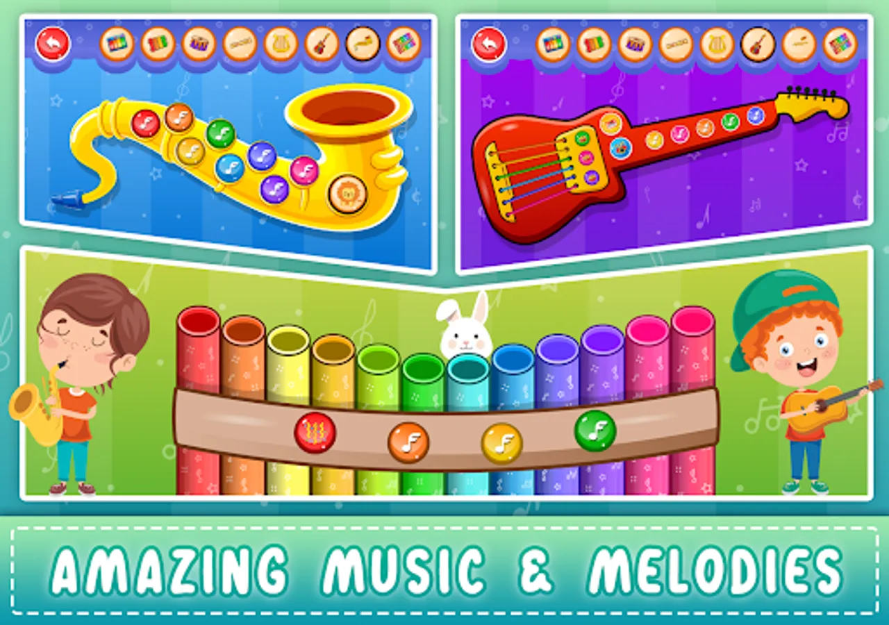 In addition to these sounds, the musical instruments games also offers a variety of fun and educational kids game providing a holistic learning experience beyond music, covering areas such as math, language, logic and problem-solving.