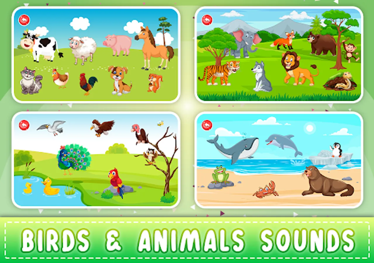 ⇒ Animal sounds games to learn sounds of birds & sea animals