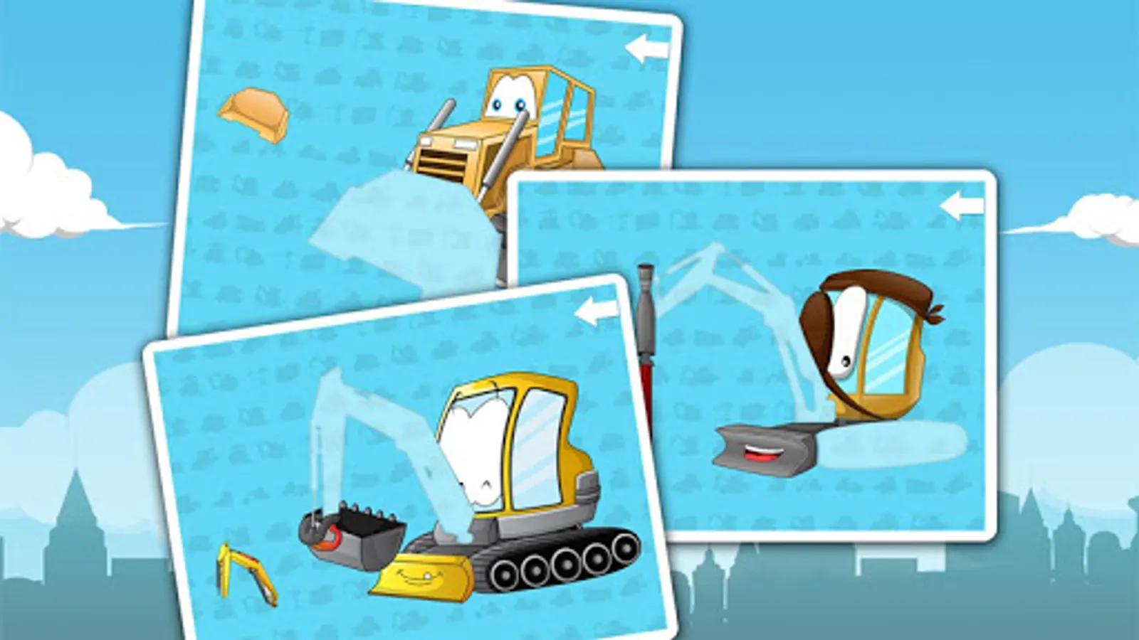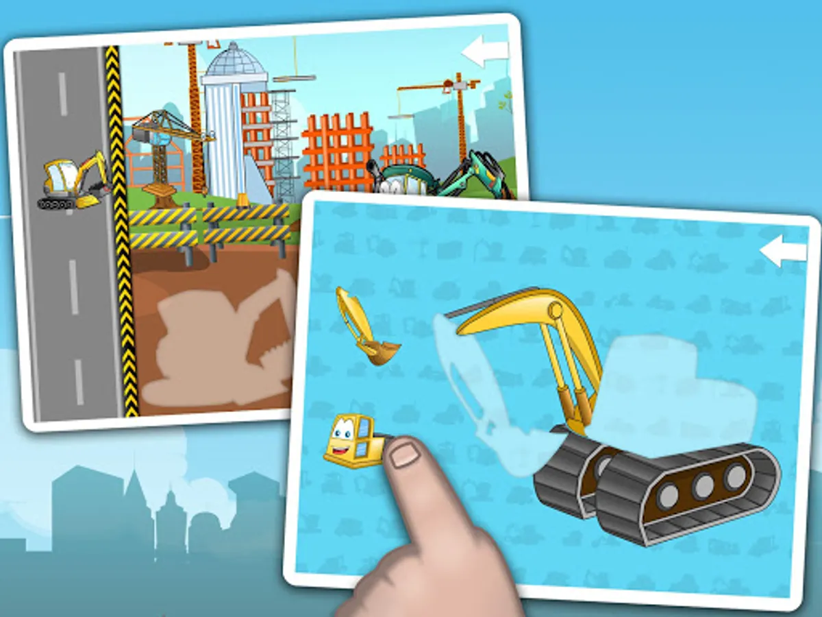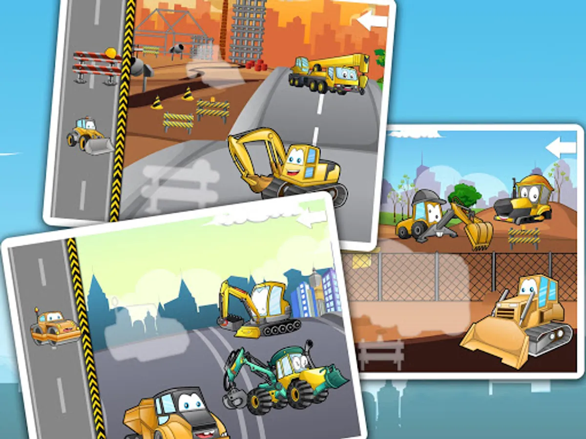 The app for kids contains vehicles such as cement mixer, dump truck, road roller and many more.