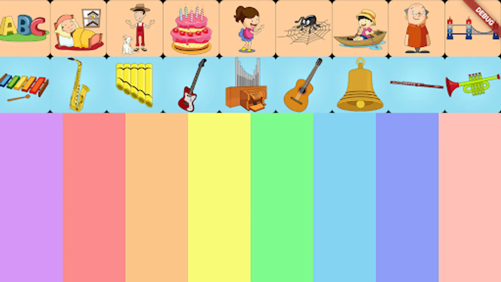 The app includes nursery rhymes or songs such as the abc song, old macdonald had a farm and itzy bitsy spider and row row your boat. Your child may be able to learn to play piano / the different tunes and be able to play the song themselves.