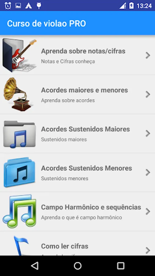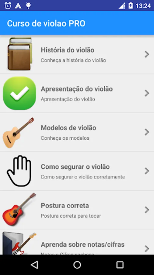 The guitar course is composed with all the material necessary for a beginner in guitar, with all the theoretical basis and explanations necessary for you to enter the world of music with his guitar, no previous knowledge is not necessary, in the course you will see: