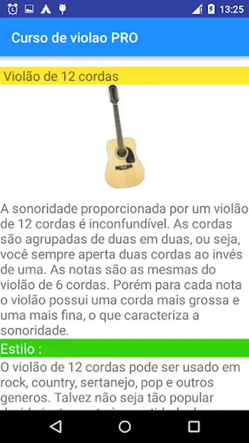 The history of the guitar as it began, the models available in the market to know the differences between the guitars, proper posture, about chords harmonic field to read