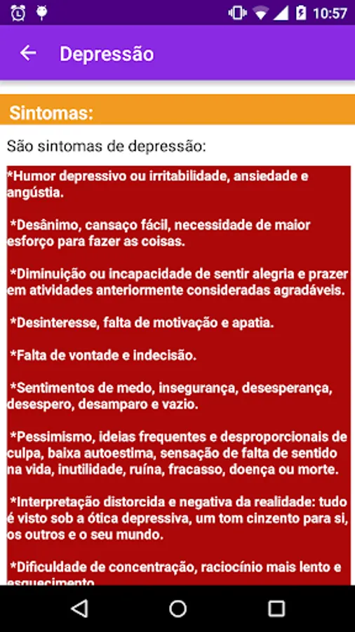 The application brings a lot of information about depression, what is depression as it arises and its main causes and symptoms and various treatment tips.