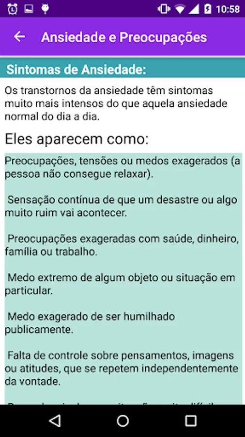 I also learned a lot about anxiety and concerns, the causes, symptoms and can understand what causes anxiety problems, and see various tips on the subject.