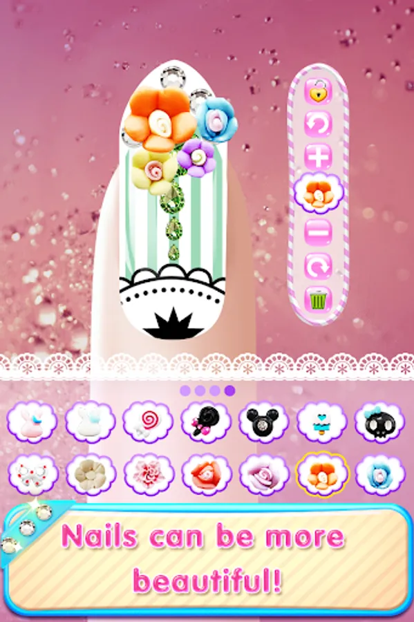 Create unique and fashionable nails art! Now, you got tons of free beautiful nail polishes, glitter, crystals, stickers, patterns!