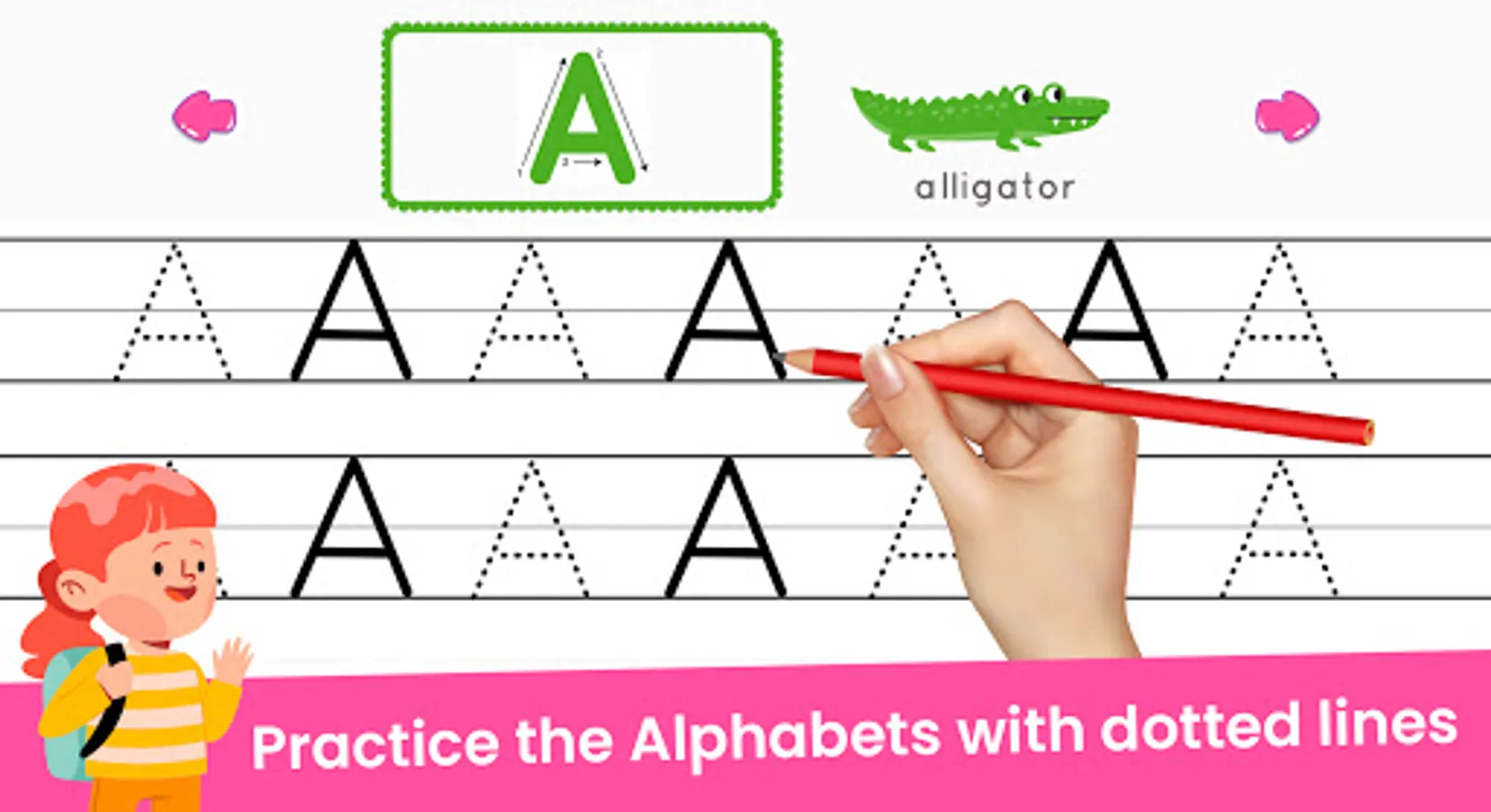 Fun, free, and simple way to help your toddler learn and trace letters of the alphabet. Alphabets writing practice with colourful pictures and illustrations.