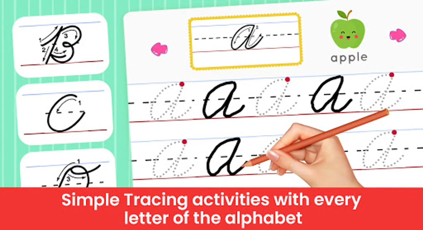 Kids will Learn good handwriting and cursive writing with our cursive writing worksheets. Your child can practice writing in cursive and normal both, with these simple tracing activities that includes every letter of the alphabet with pictures.
