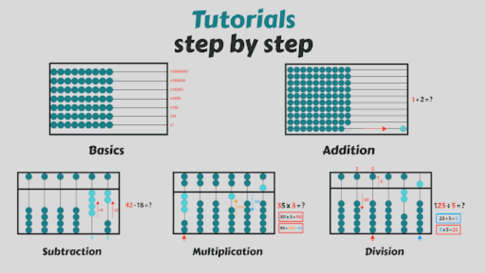 Explore and master most popular abacuses. Learn basics, counting and math on your favorite abacus. Tutorials and challenges available. Designed for all ages!