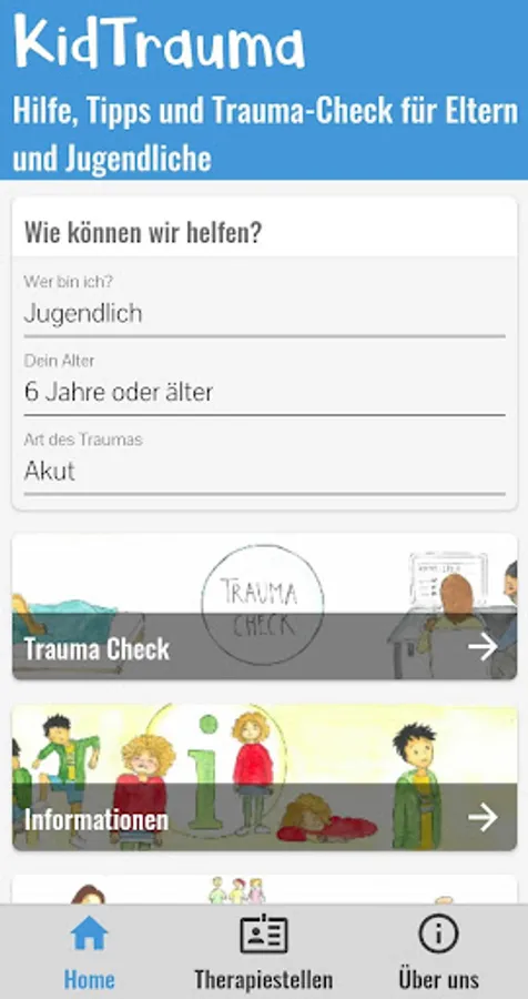 The KidTrauma application was developed by Professor Markus Landolt from the University Children´s Hospital Zurich, Switzerland. Professor Landolt is trained as a family and behavioral therapist and specialized in clinical work and research with traumatized children and their parents.