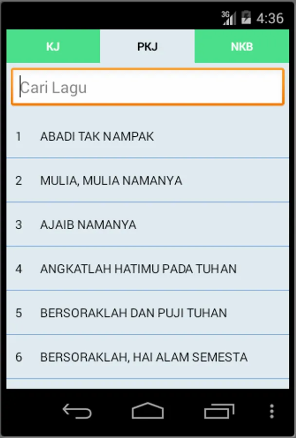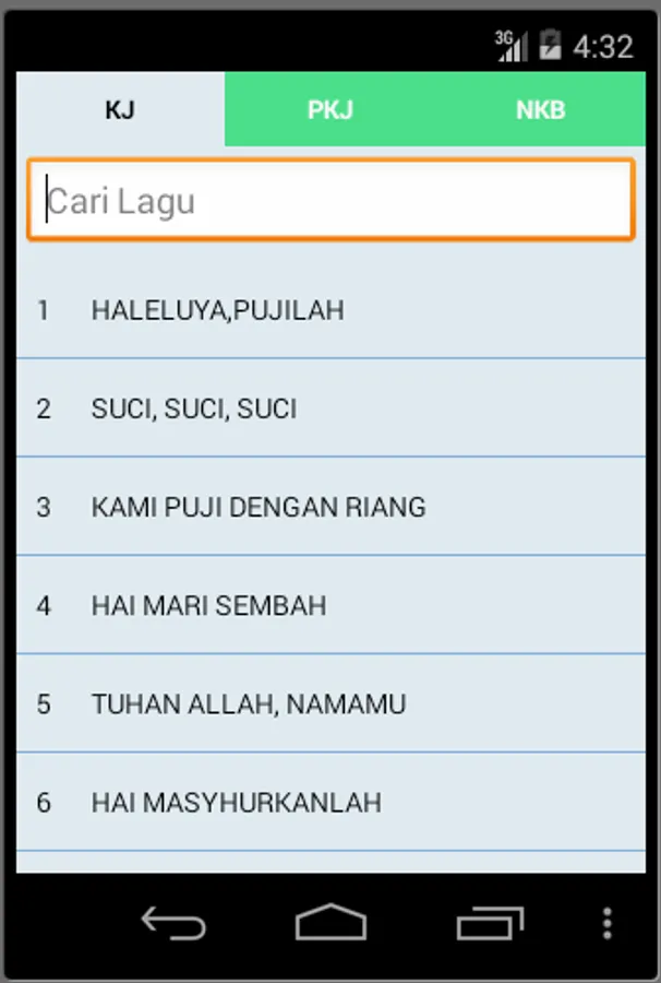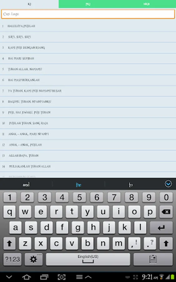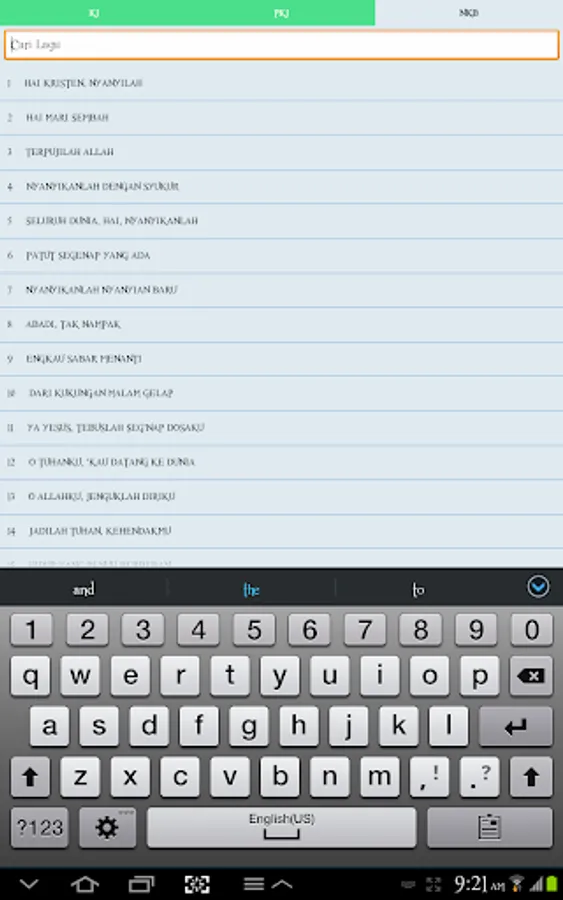 In this church hymn application there are 3 types of KJ, NKB and PKJ.