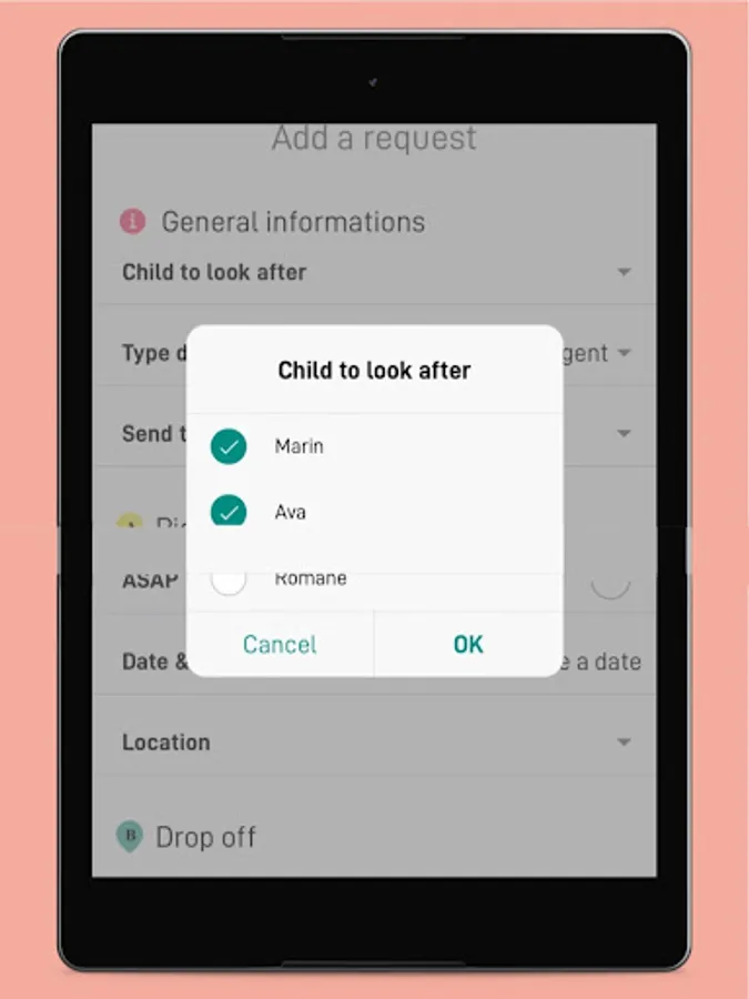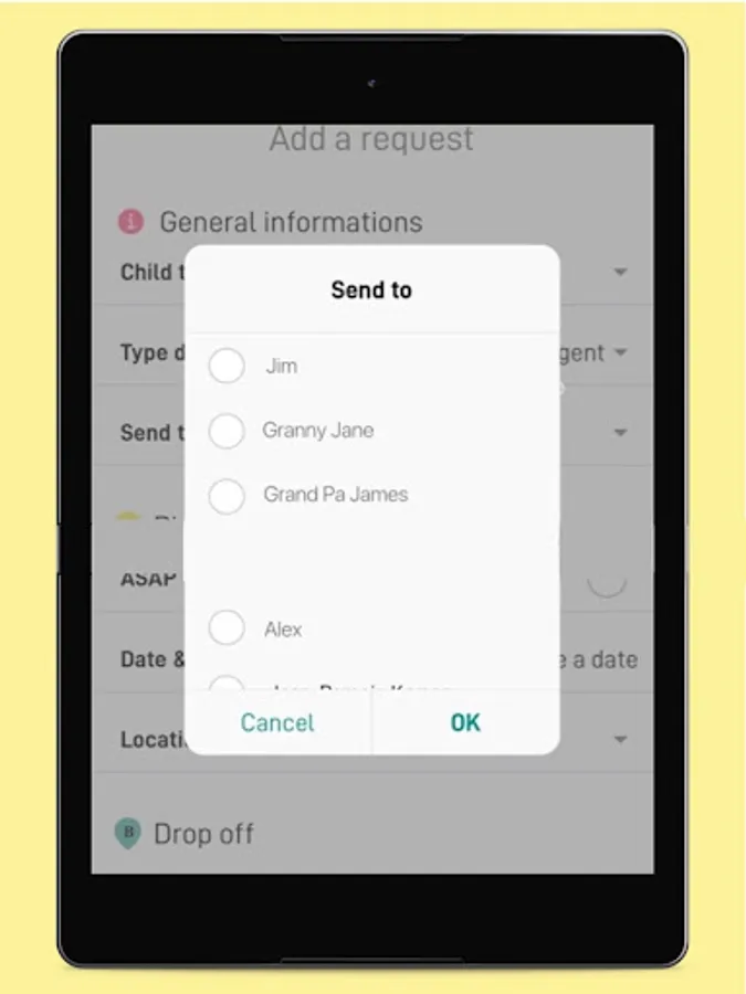 -Send your kids care request to your group