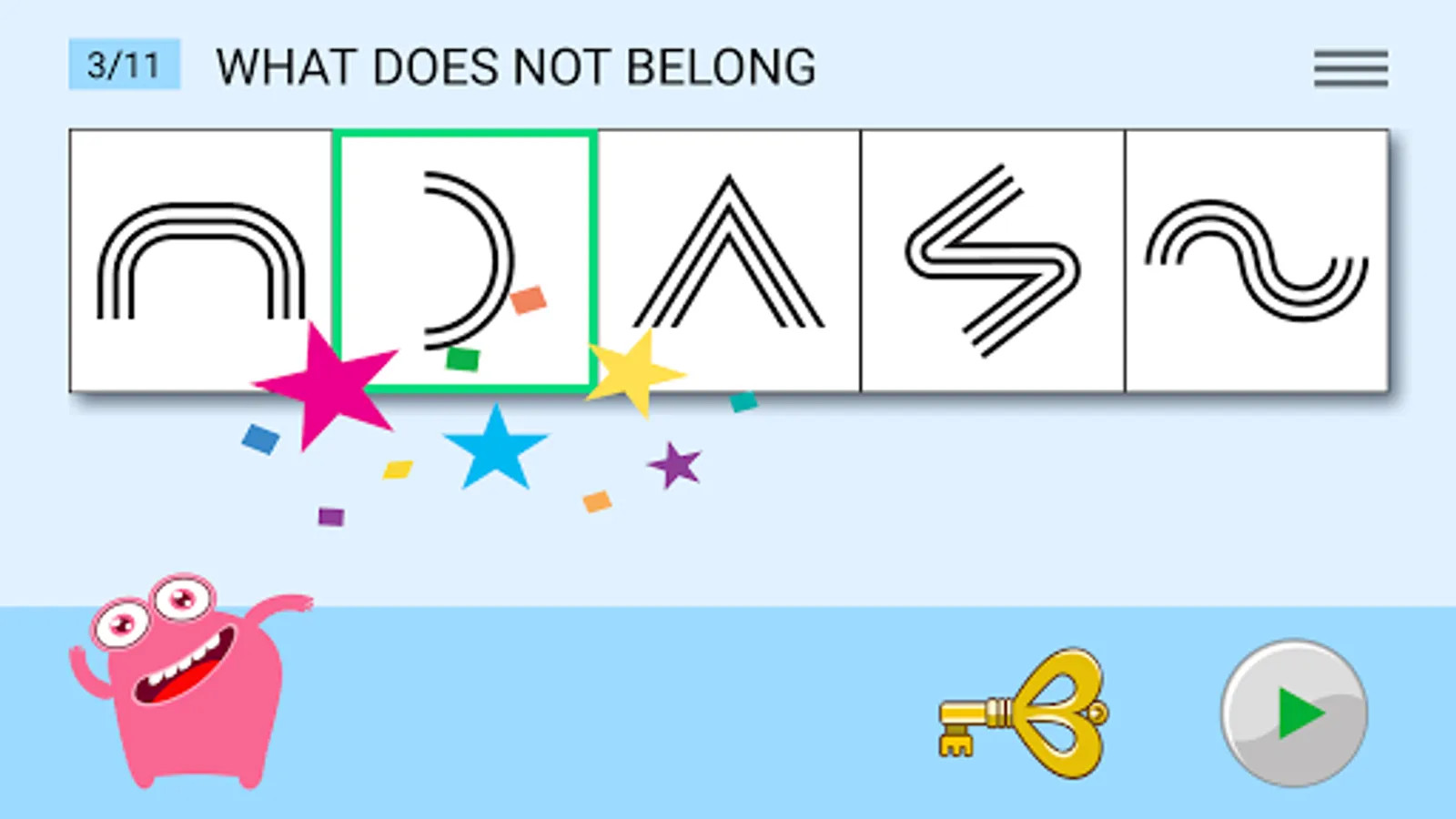 To represent the navigation and the logical hints, we have created an intuitive-visual language of our own, which consists of animated shapes and color scenarios. All this enables the child to use the app without parental involvement, learning to think independently and with pleasure.