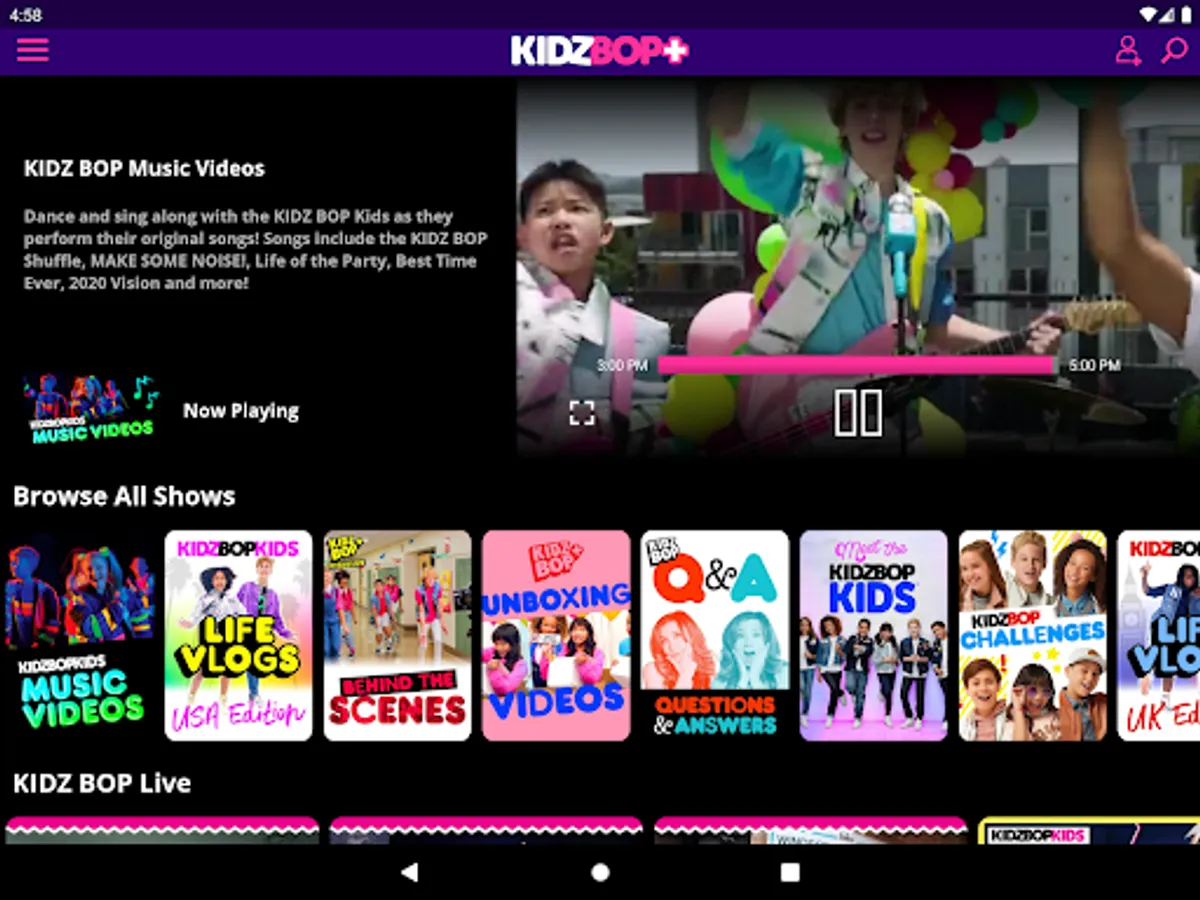 KIDZ BOP+ is the ultimate destination for KIDZ BOP fans, featuring hours of music videos as well as exclusive bonus content from the KIDZ BOP Kids including vlogs, behind the scenes content, challenge videos, tutorials on how to be a KIDZ BOP Kid, and more!