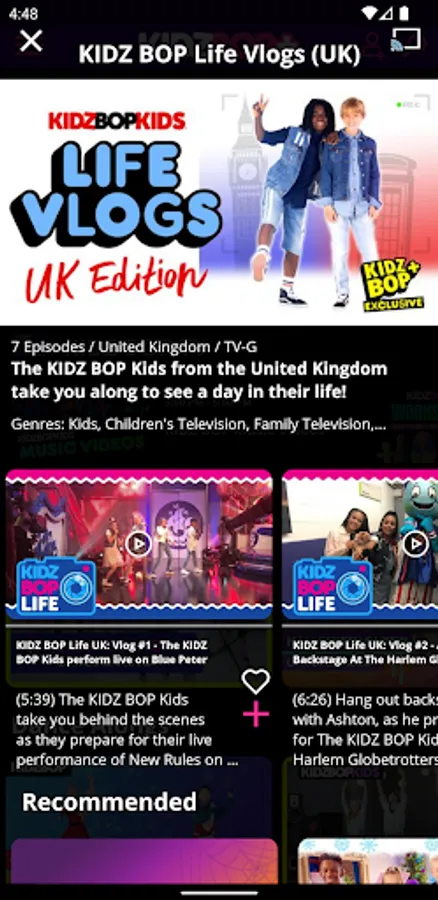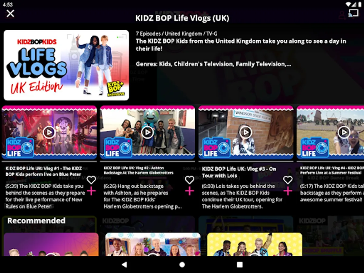 Series on KIDZ BOP+ include: KIDZ BOP Music Videos, KIDZ BOP Challenge Videos, KIDZ BOP Unboxing Videos, KIDZ BOP Life Vlogs (US), KIDZ BOP Life Vlogs (UK), KIDZ BOP Back To School, Meet The KIDZ BOP Kids, KIDZ BOP Behind The Scenes, KIDZ BOP Q&A's, KIDZ BOP Crafts, Games + More!, KIDZ BOP Workshop, KIDZ BOP Presents Move It!