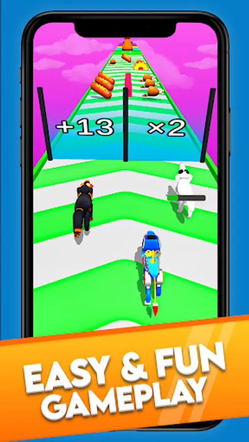 In this doggy run longer nose rush game, Your Borzoi dog runs through the different gates along the way and eat food to grow the dog's nose if the running dog passes through the right gate, and avoids obstacles, the nose will grow longer and longer. if the dog goes through the wrong gate or hit the obstacle nose gets shorter. Reach the finish line with the longest nose of the Borzoi dog and stretch the nose as much as possible.