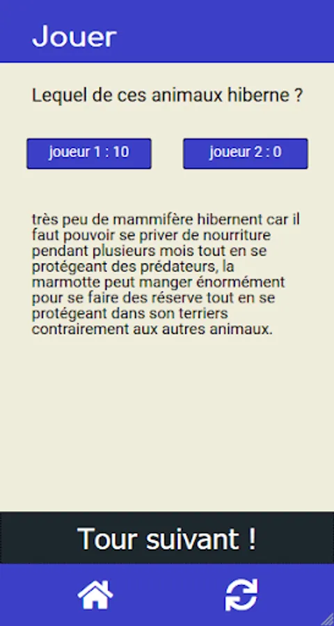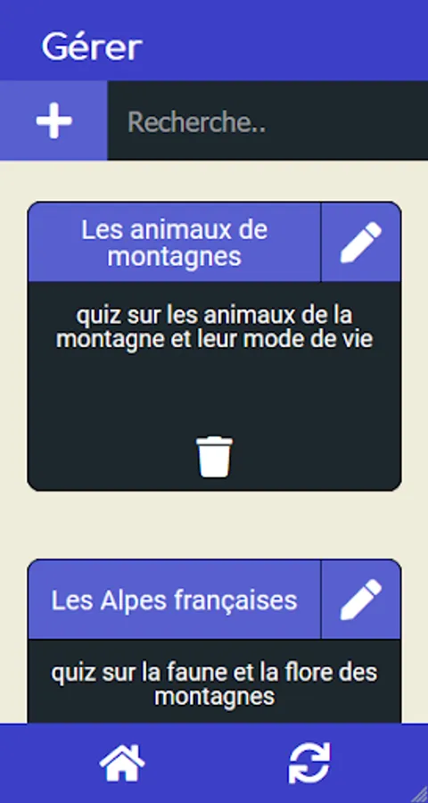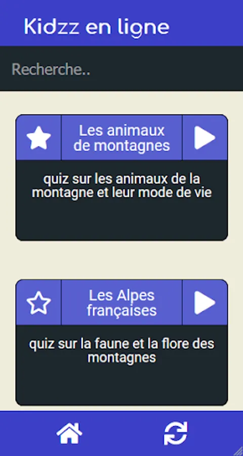 A small application to offer a small quiz playable on a single phone.Senting to animators to introduce children to nature and many other things in the form of quiz.The application is based on the exchange of quizzes to provide interesting quizzes without having knowledge in a particular field.
