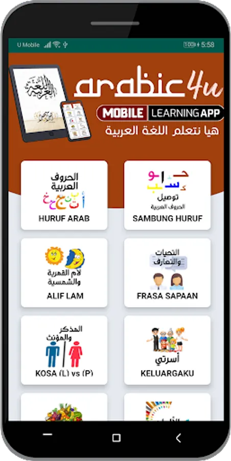 Arabic4u is an interactive mobile learning application compiled html5 contents using WebTools 2.0 such as Quizlet, Quizizz, H5P etc. The contents provided learning activities for beginners who love to know Arabic Language in simple and attractive way.