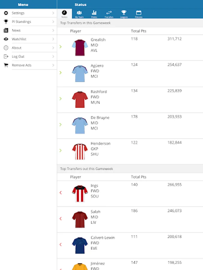 - Make any transfers you need for your fantasy league team, find the perfect player with detailed filters allowing you to sort players by points, price, position, team and lots more