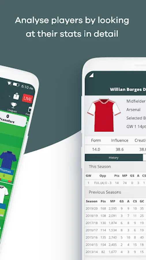 - Make any transfers you need for your fantasy league team, find the perfect player with detailed filters allowing you to sort players by points, price, position, team and lots more