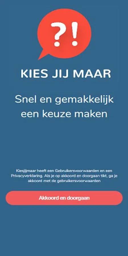 Statements such as "It doesn't matter to me" or "You choose what we are going to do" are statements that led to the Choose you but app. The Kies je maar app has been developed for people who cannot or do not want to make a choice. Have a bite to eat with family or do something fun with your friends? In the Choose you but app you enter your preferences with regard to budget, within which radius, score etc. Choose you but give you recommendations based on your preferences. Always some surprises without stress!