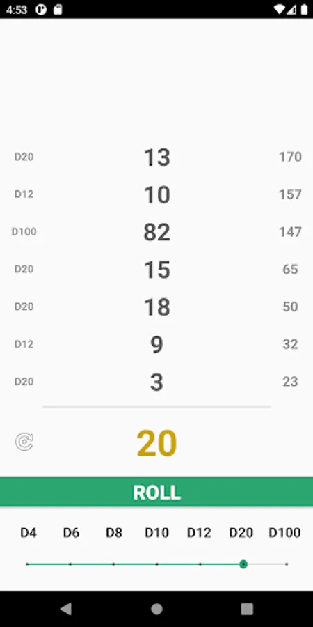 Roll D4, D6, D8, D10, D12, D20, and D100! Quick to roll, see your history, and totals are calculated automatically! Use for D&D or any game with dice.