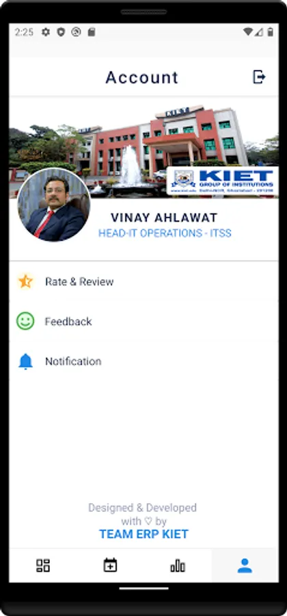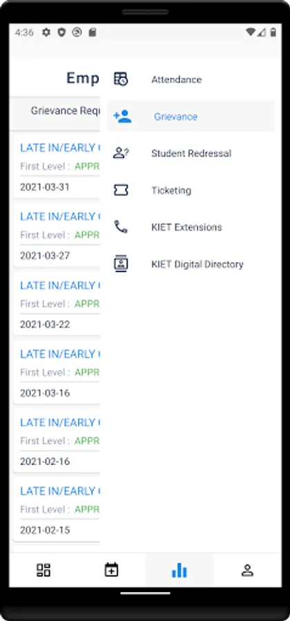 An app for all the employees of KIET Group Of Institutions to keep track of their daily attendance, leave and grievance summary etc. The employees can also mark their leave and grievance from itself and higher authorities can approve from the same app. With the user-friendly view, the user can see his/her payable days summary and can take action accordingly.