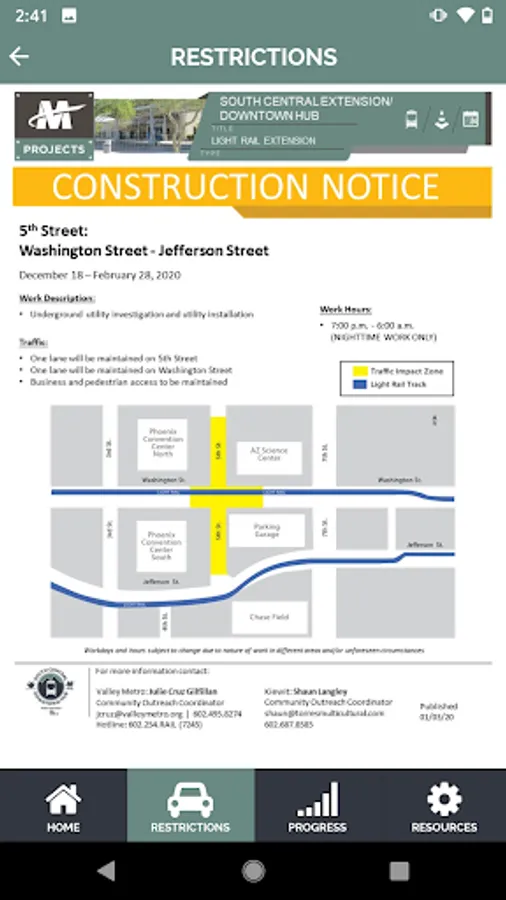 The South Central Extension/Downtown Hub will connect with the current light rail system in downtown Phoenix and operate south to Baseline Road. The project also includes a hub in downtown Phoenix, new stations and public art. This app will help keep you up-to-date on all of the construction and project progress.