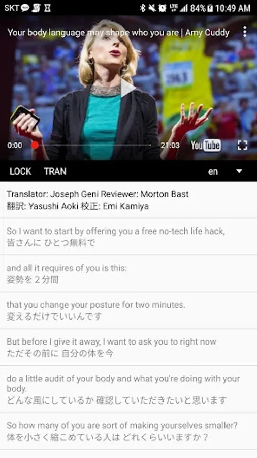 If you see a well-translated video like TED, you can compare two different languages for study.