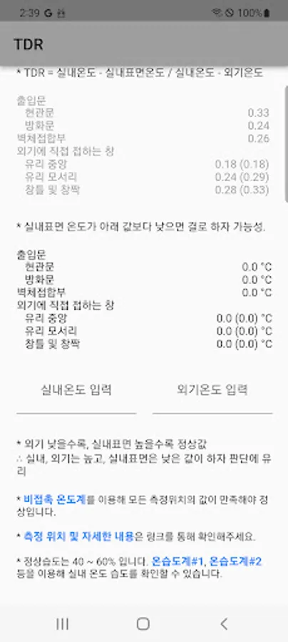It is a TDR (Temperature Difference Ratio) calculator that is used as a criterion for judging condensation defects on windows, doors, and walls of multi-family apartments.