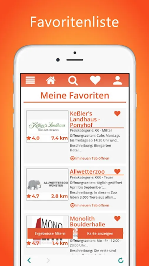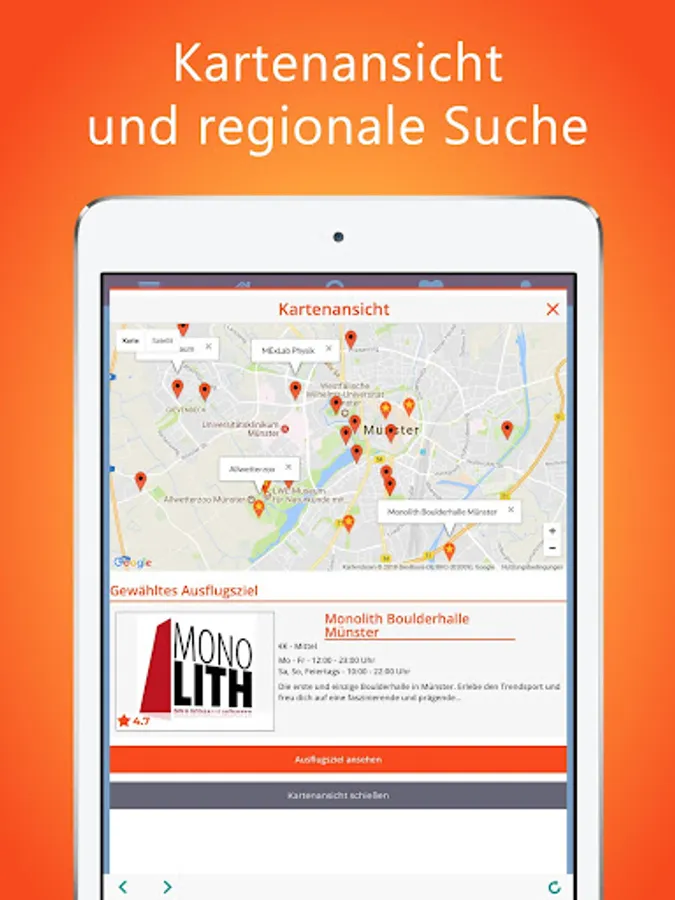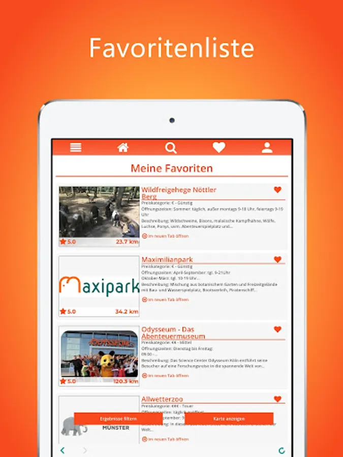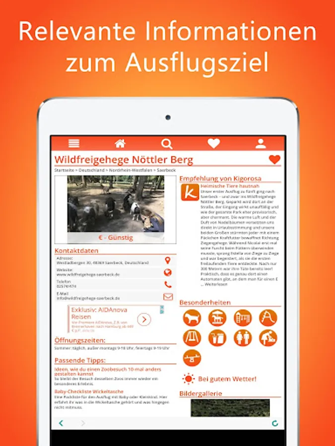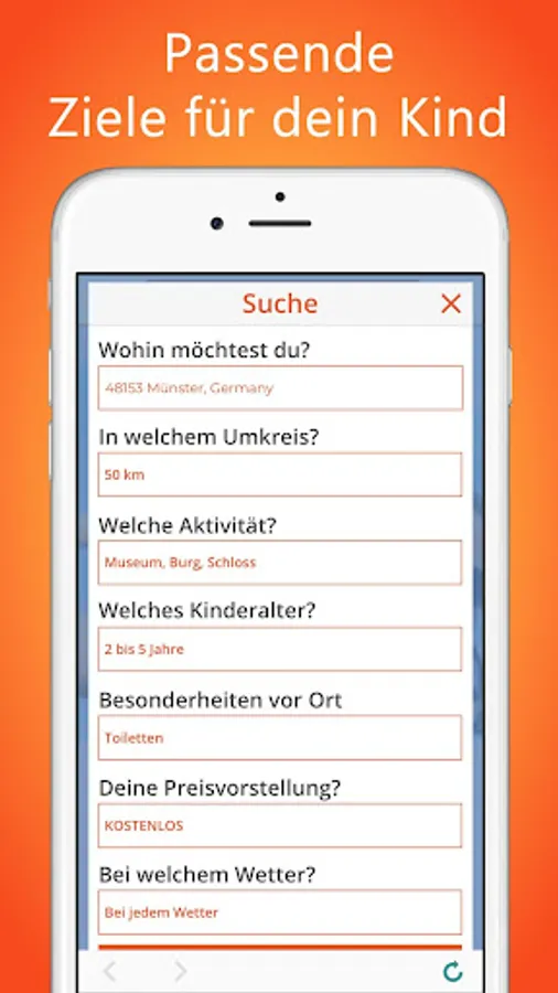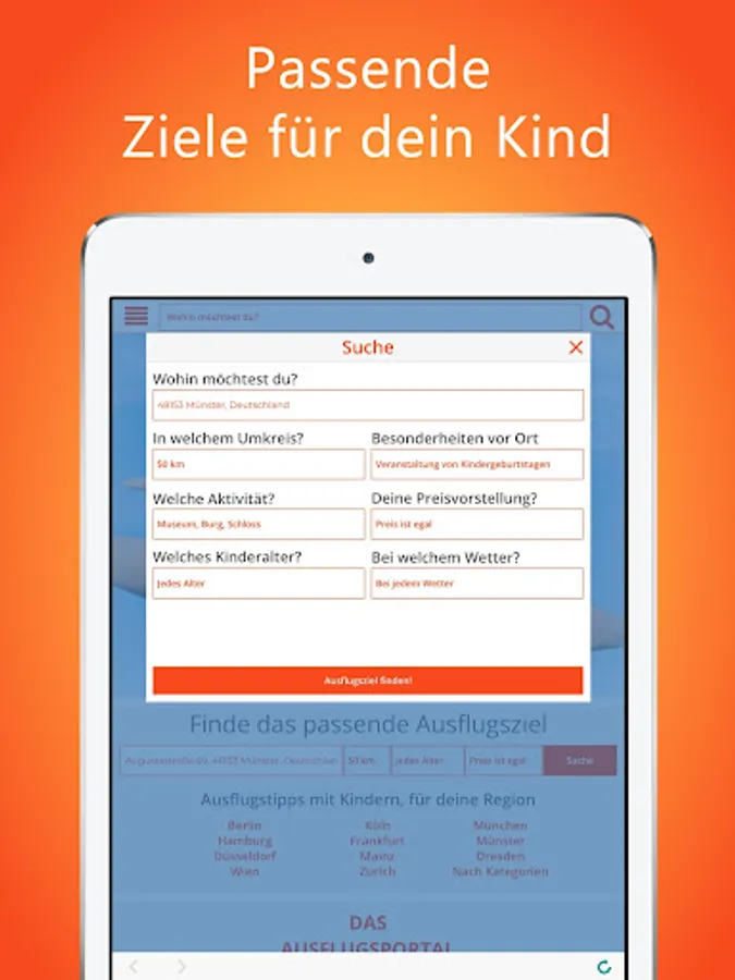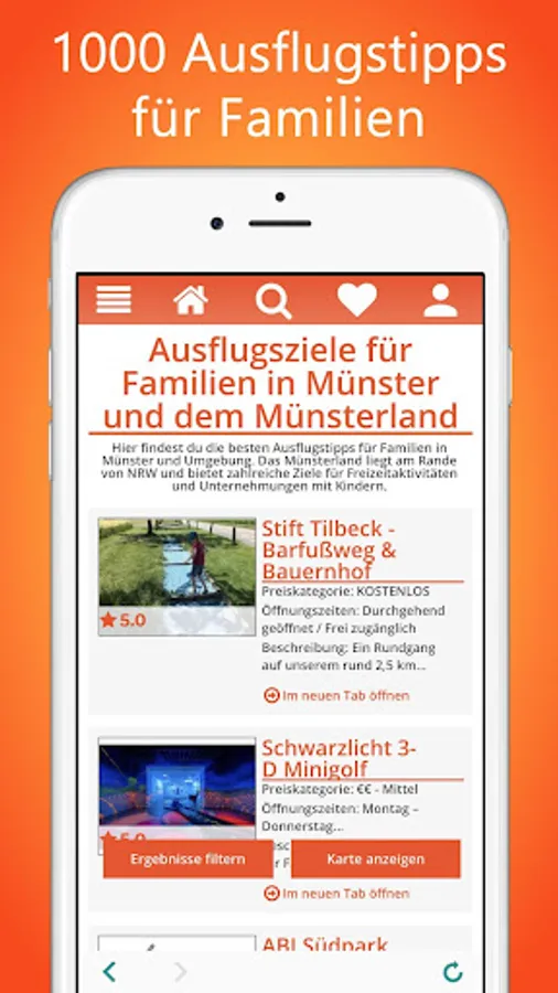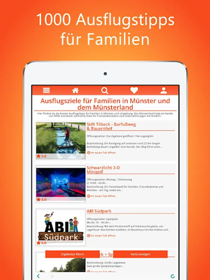 Via smartphone and tablet you can find excursion tips in your area. The destinations are particularly suitable for children and the search is geared to the needs of families.