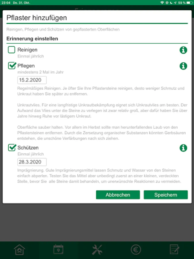 Does your house also have a garden or a balcony? Then the garden area is definitely also interesting for you. In this way, you can stay up to date on which gardening work is due and when and, if necessary, find out how you can best carry it out.