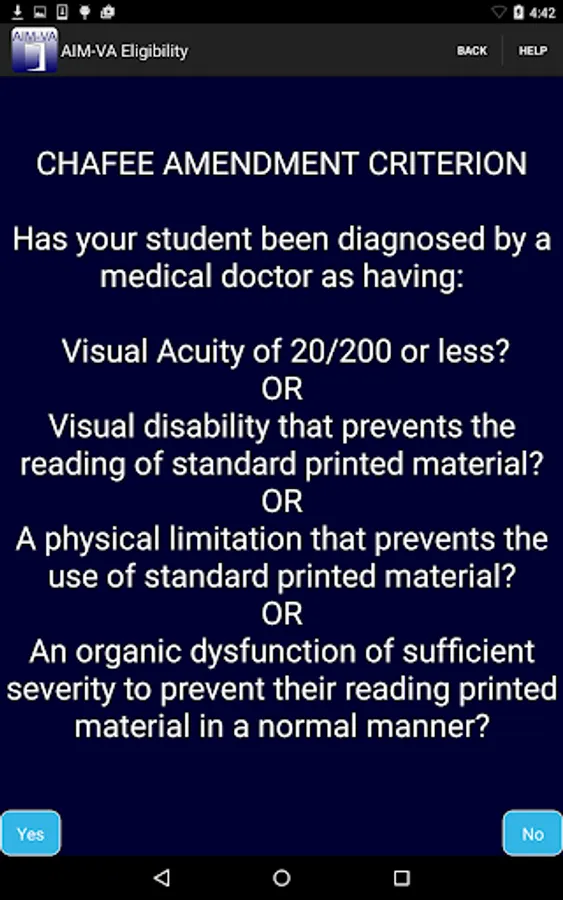 This app is used to see if the student is eligible to receive and use accessible instructional materials created by AIM - Virginia.