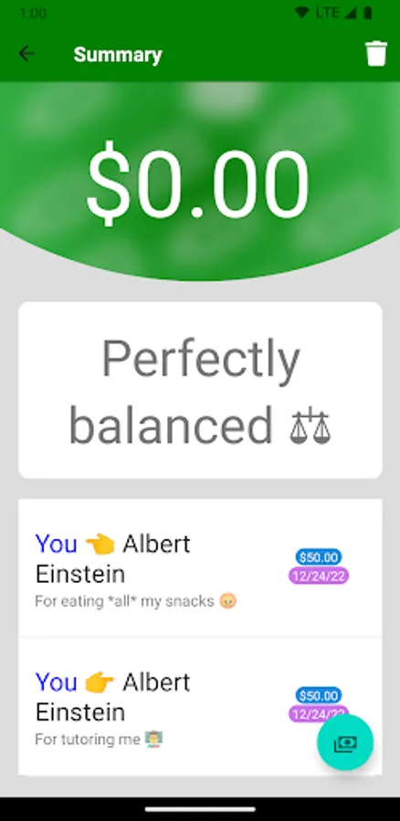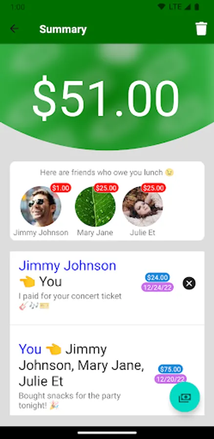 The best part: debts cancel out automatically. If you buy a friend a $10 lunch and they buy you a $5 snack, the app lets you know only $5 needs to exchange hands. This scales up to balance out debts between groups of any size!