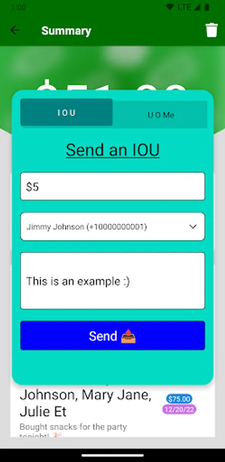 With Cash Balancer, you can request money from individuals or people can record their debts themselves.