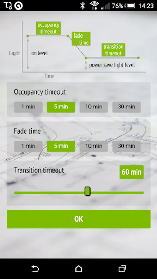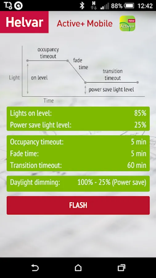 This app is for adjusting settings in the new Helvar Active+ solution. To use this app, you must have an approved smartphone running Android v4.0+ equipped with an LED flash, a luminaire fitted with an Active+ LED driver and the Active+ Sense. Settings that can be adjusted are: