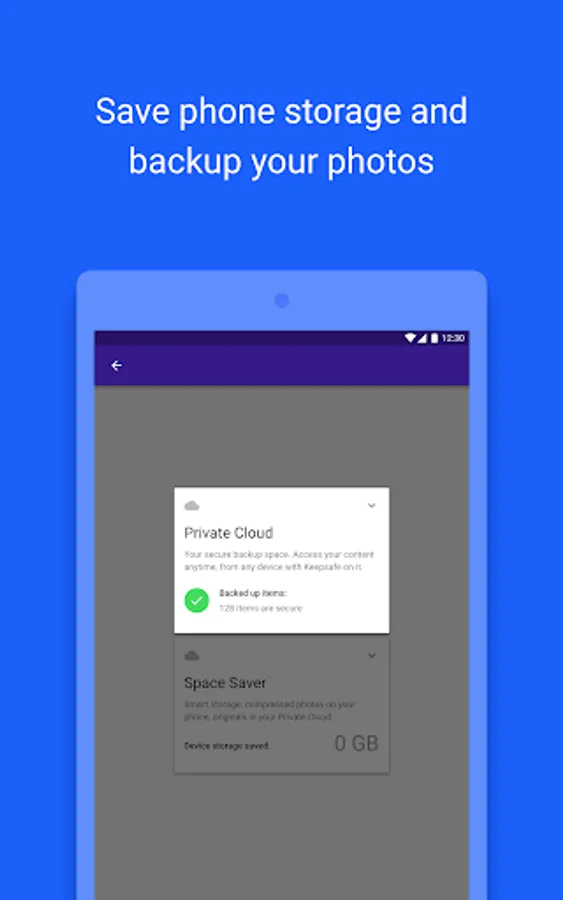 • Private Cloud: Stores up to 10,000 items in Keepsafe’s hidden photo vault