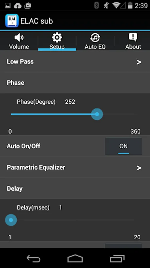 This APP is used as remote control for the ELAC subwoofer models SUB 2050, SUB 2070, SUB 2090, S10EQ and S12EQ using BLE (Bluetooth Low Energy) as remote control protocol.