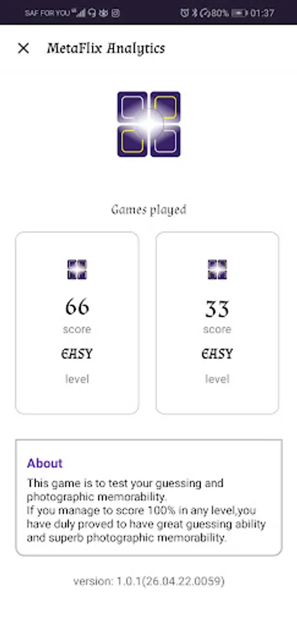 This game is to test your guessing and photographic memorability. If you manage to score 100% on any level, you have duly proved to have great guessing ability and superb photographic memorability.