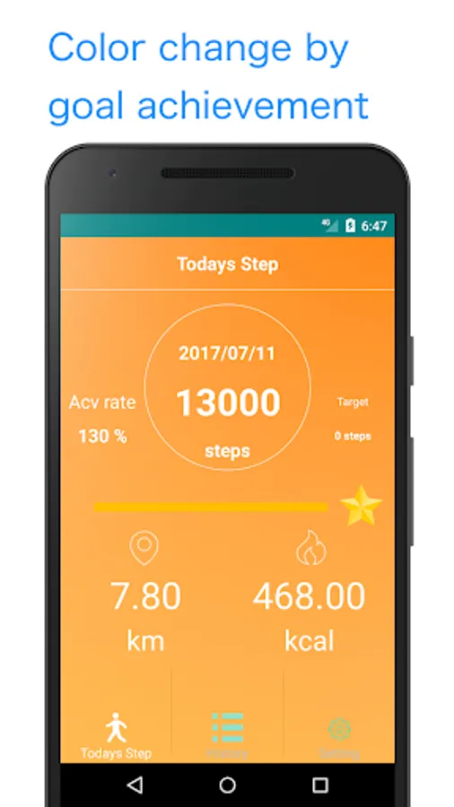 You can also set the target value from "Settings", so you can set the number of steps you want to walk per day and measure the degree of achievement by real time.